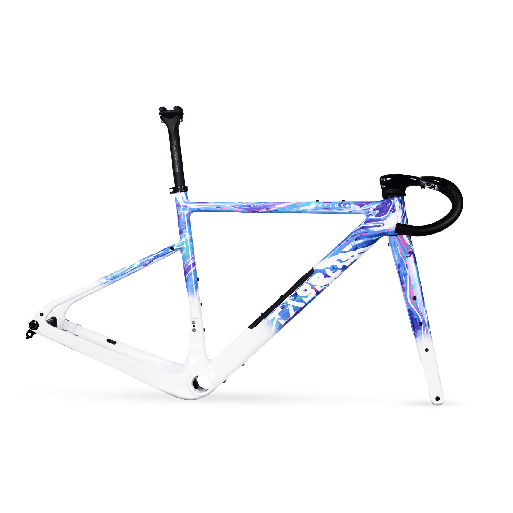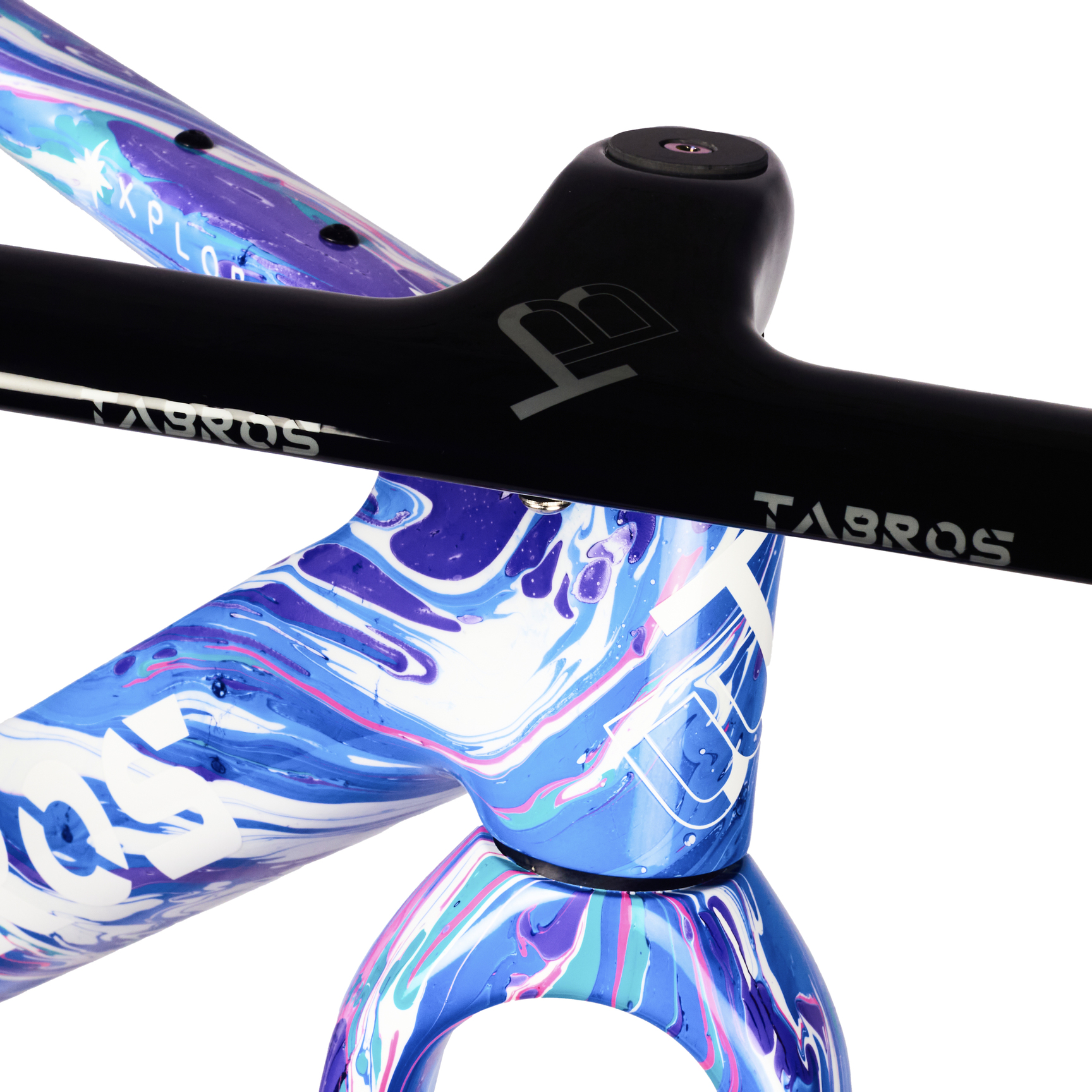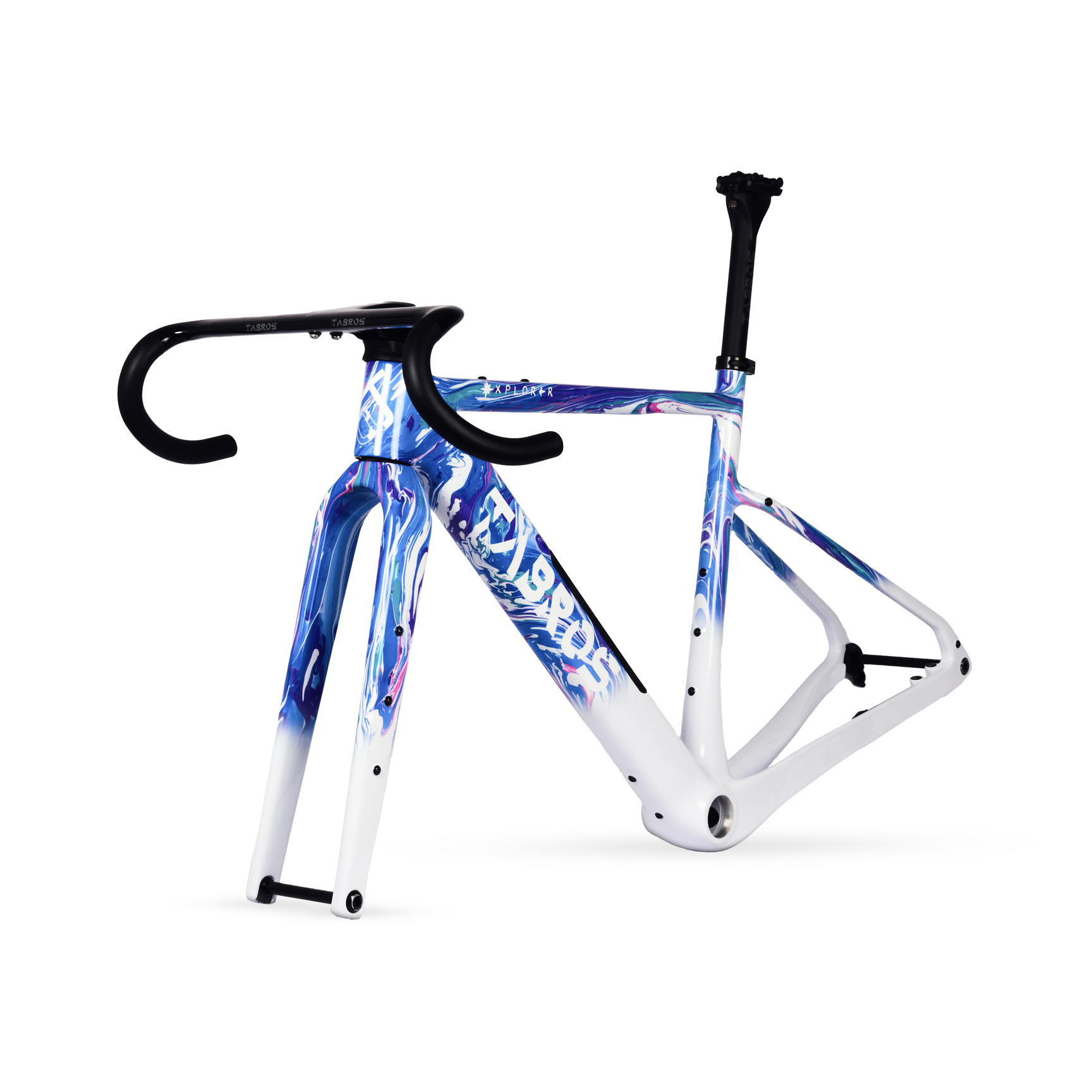 Bici gravel full carbon di TABROS, progettata per performance, comfort e controllo su ogni terreno, con passaggio ruota fino a 50c e supporti per bikepacking, per esplorare senza confini.